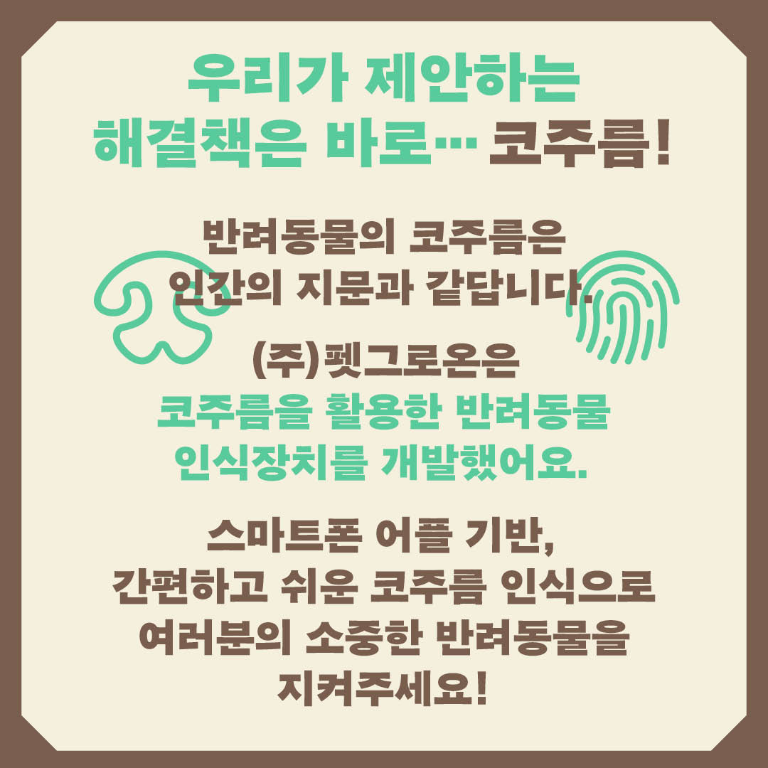 반려동물의 입장에서도, 사람의 입장에서도 고통과 비용이 제로라는 점이 너무 좋은 것 같아요! 어떻게 이런 기발한 아이디어를! 확실히 칩 보다는 코주름이 좋겠네요!
