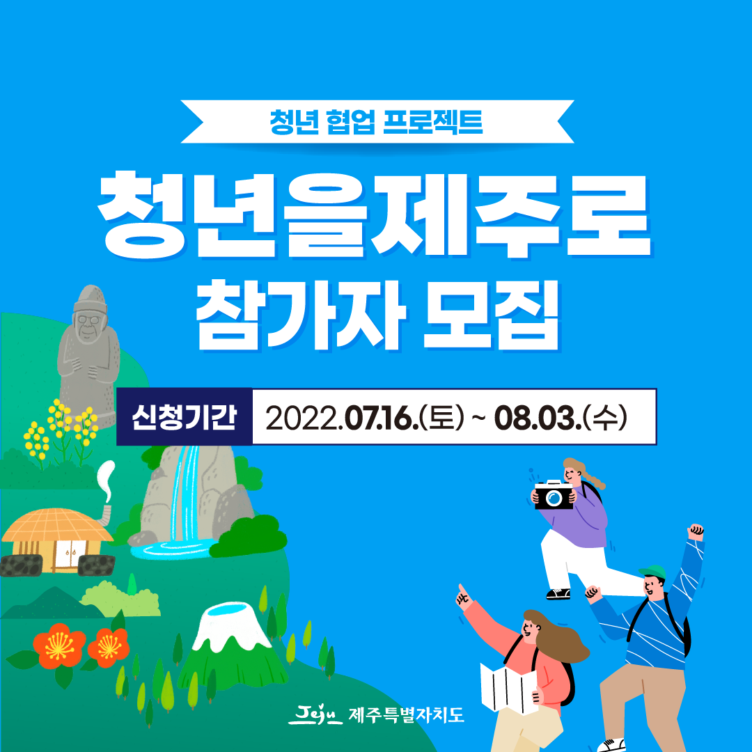| 제목 | [모집공고] 전국 청년들과 제주 청년들의 유쾌한 만남 청년을 제주 | ||