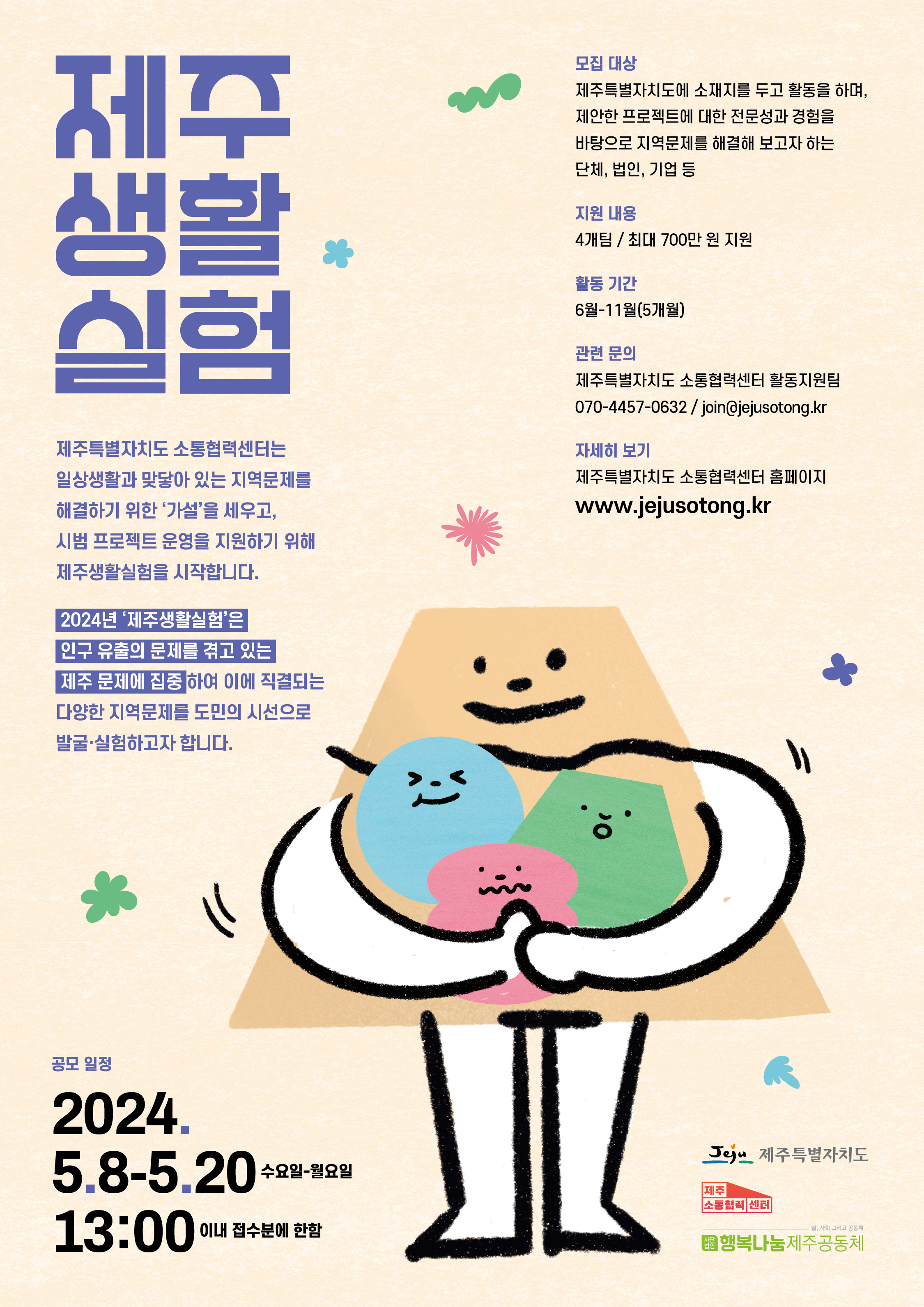 | 첨부 | 붙임1) 2024 제주생활실험 포스터_제주특별자치도 소통협력센터.jpg | ||