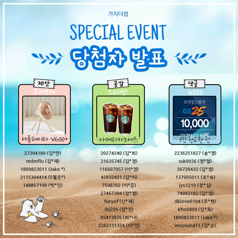 ? 가치더함 5월 Special Event 당첨자 발표 ?